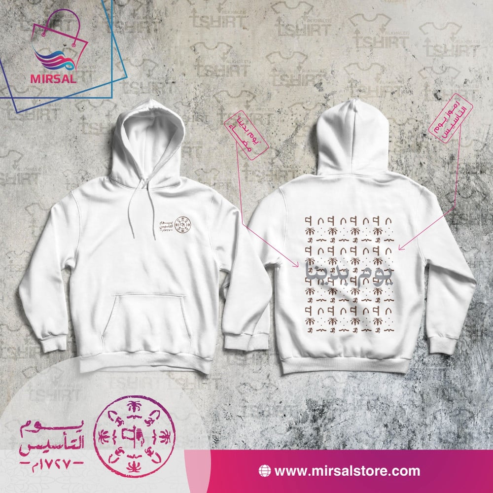 هودي التأسيس السعودي المميز و الأنيق , بتصميم شعار ورموز يوم التأسيس السعودي لتكن أنيق بيوم بدينا 💚